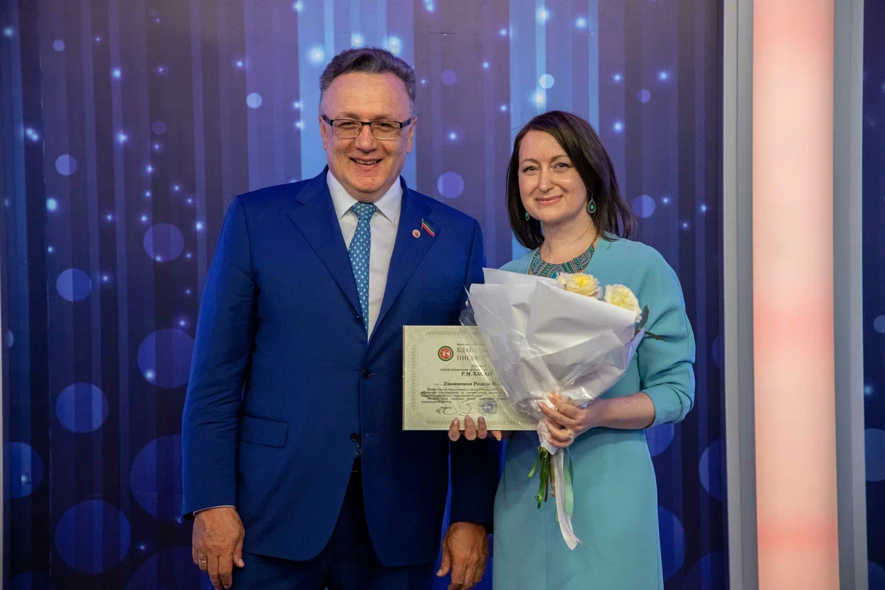 Кроме того, он вручил благодарственное письмо и нагрудной знак генеральному директору АО «ТРК «Новый Век» Ильшату Юнусовичу Аминову за высокий уровень организации третьего Международного телевизионного конкурса художественного слова «ТАТАР СҮЗЕ». Также от имени заместителя Председателя Государственного Совета РТ благодарственными письмами за вклад в сохранение и развитие родного языка были награждены сотрудники телеканала «ШАЯН ТВ».