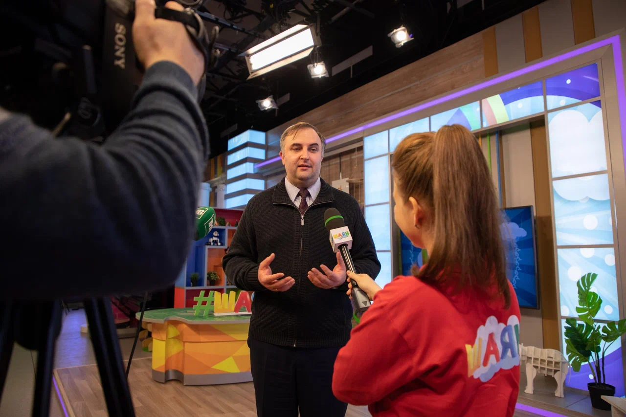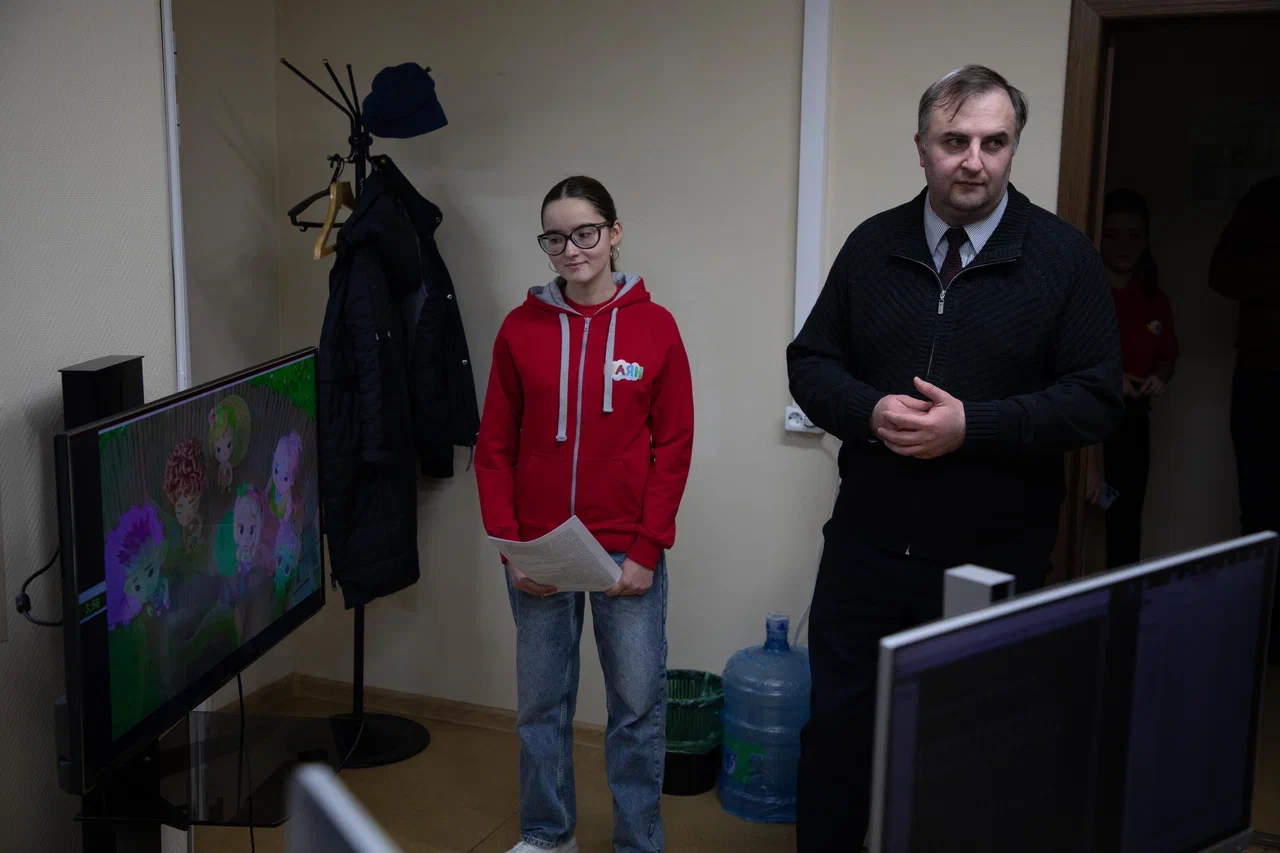 Огромную роль в формировании контента нашего канала занимает студия дубляжа. Именно поэтому наши гости не смогли обойти стороной эту локацию. В студии дубляжа тоже кипела работа. Их визит пришелся на момент озвучки мультфильма. Поэтому им удалось понаблюдать за этим увлекательным процессом и поделиться впечатлениями. Заведующая студией Роза Адиятуллина ответила на все интересующие вопросы.