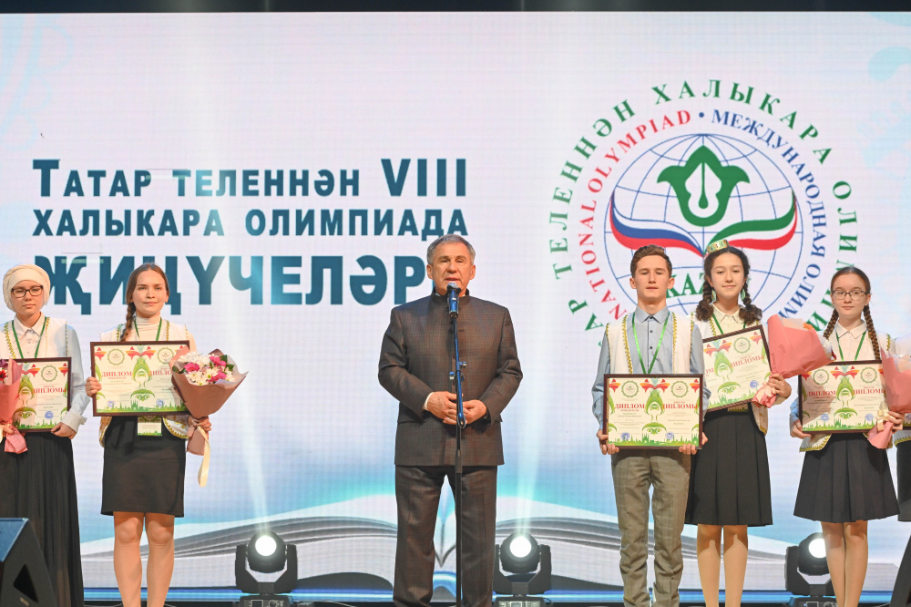 Поздравить знатоков татарского языка пришел и Президент Республики Татарстан Рустам Нургалиевич Минниханов.В своей речи Президент особо подчеркнул роль подрастающего поколения в контексте сохранения и развития родных языков.